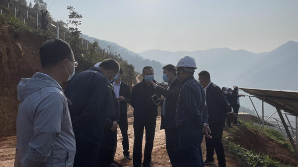 4月10日,镇康县委副书记、县长段寿华到南京中核能源工程有限公司(以下简称“中核南京公司”)镇康县“农光互补”光伏发电项目一期80MW项目现场进行调研。