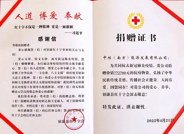 2月23日云南省镇康县爆发疫情,为进一步助力当地政府疫情防控,4月22日,中核(南京)能源发展有限公司(以下简称“中核南京”)通过镇康县红十字会定向向镇康县应急管理局和镇康县人民医院进行防疫物资的捐赠,用于支持当地疫情防控工作。捐赠物资有:可视喉镜、气溶胶消毒喷雾器、医用防护隔离服、医用外科口罩等,共计:772700元。